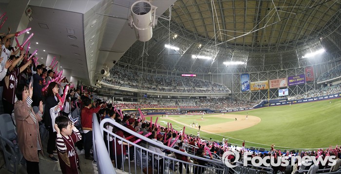 (서울=포커스뉴스) 1일 오후 서울 구로구 고척스카이돔에서 열린 2016 타이어뱅크 프로야구 개막전 넥센 히어로즈와 롯데 자이언츠의 경기에서 관중들이 응원을 펼치고 있다.