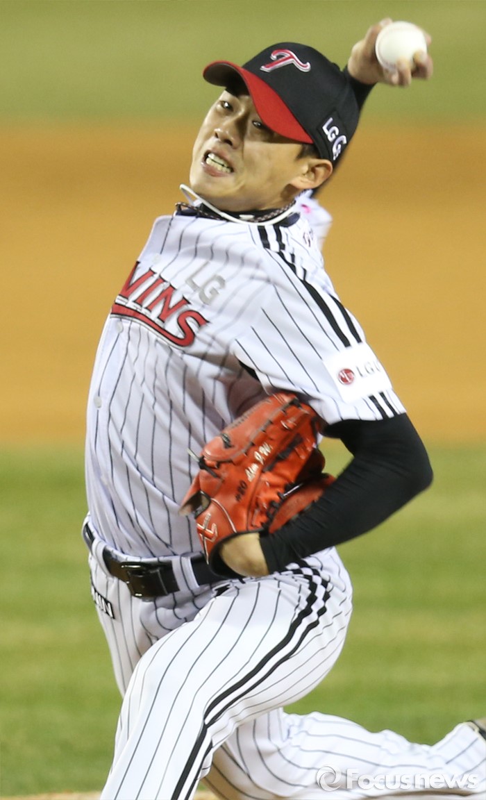 (서울=포커스뉴스) 1일 서울 잠실구장에서 열린 2016프로야구 개막전 한화-LG 경기에서 LG 투수 임정우가 투구하고 있다.
