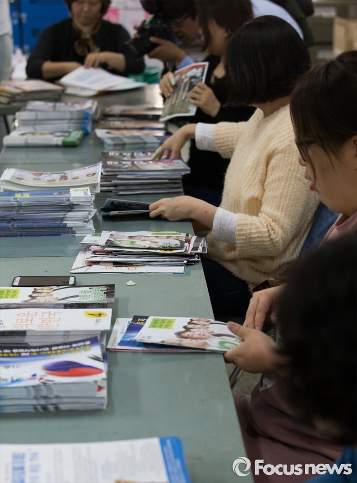 (서울=포커스뉴스) 2일 오후 서울 성북구 선거관리위원회에서 관계자들이 가정으로 발송될 제20대 국회의원 선거 공보물을 정리하고 있다.