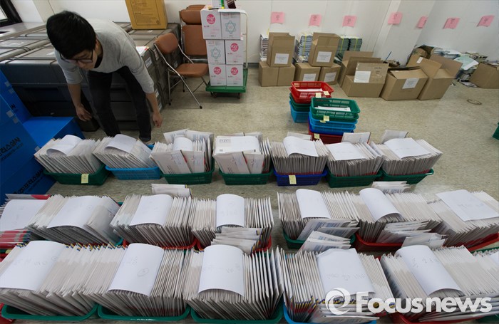 (서울=포커스뉴스) 2일 오후 서울 성북구 선거관리위원회에서 한 관계자가 가정으로 발송될 제20대 국회의원 선거 공보물을 정리하고 있다.