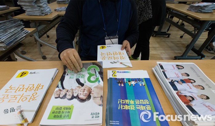 (서울=포커스뉴스) 2일 오후 서울 성북구 안암동주민센터에서 관계자들이 가정으로 발송될 제20대 국회의원 선거 공보물을 정리하고 있다.