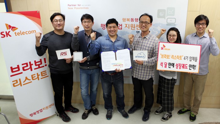 이재호 SK텔레콤 창조경제혁신(CEI)사업단장은 “앞으로도 벤처업체들의 빠르고 안정적 성장을 위해 지원 프로그램을 더욱 고도화하며, 창업생태계 조성에 최선을 다하겠다”고 말했다.브라보 리스타트 4기 업체 3곳.<사진제공=sk텔레콤>