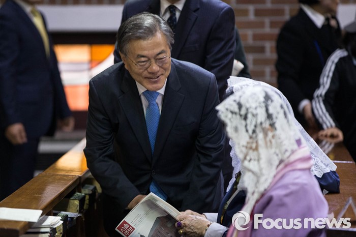 (서울=포커스뉴스) 선거운동이 시작되고 첫 주말을 맞은 3일 오전 문재인 전 더불어민주당 대표가 서울 동작구 신대방성당에서 김병기 더불어민주당 동작갑 후보를 찾아 합동유세를 하고 있다.