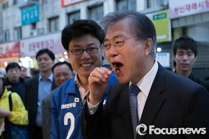 | △ 재래시장 갓김치 맛보는 문재인 전 대표 |