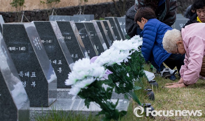 (제주=포커스뉴스) 3일 오전 제주 4ㆍ3 평화공원에서 열린 제68주년 4ㆍ3희생자 추념식에 참석한 시민들이 위령비 앞에서 예를 올리고 있다.
