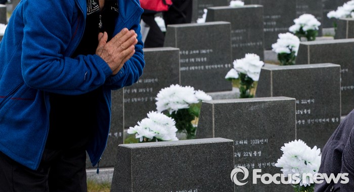 (제주=포커스뉴스) 3일 오전 제주 4ㆍ3 평화공원에서 열린 제68주년 4ㆍ3희생자 추념식에 참석한 시민들이 위령비 앞에서 예를 올리고 있다.