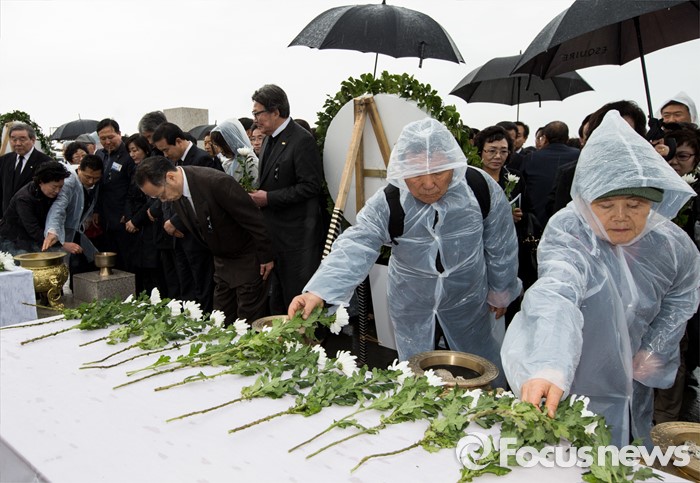 (제주=포커스뉴스) 3일 오전 제주 4ㆍ3 평화공원에서 열린 제68주년 4ㆍ3희생자 추념식에 참석한 시민들이 헌화하고 있다.