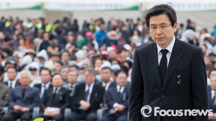 (제주=포커스뉴스) 3일 오전 제주 4ㆍ3 평화공원에서 열린 제68주년 4ㆍ3희생자 추념식에 참석한 황교안 국무총리가 분향 후 묵념하고 있다.