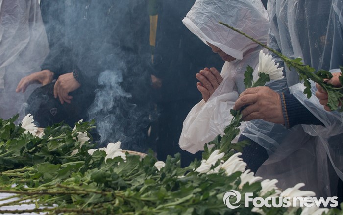 (제주=포커스뉴스) 3일 오전 제주 4ㆍ3 평화공원에서 열린 제68주년 4ㆍ3희생자 추념식에 참석한 시민들이 헌화하고 있다.