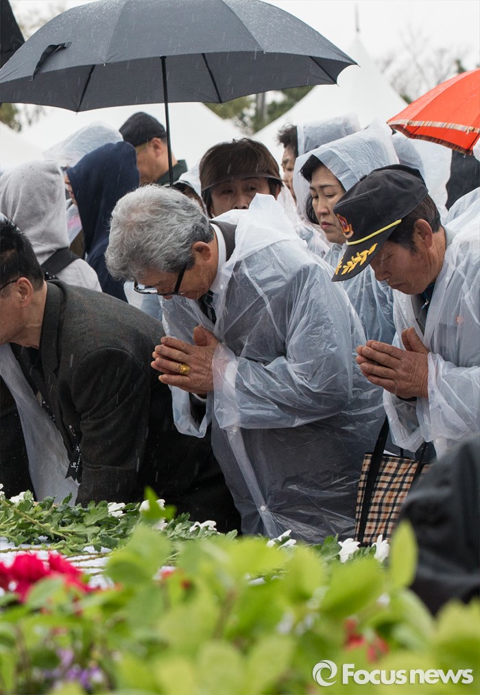 (제주=포커스뉴스) 3일 오전 제주 4ㆍ3 평화공원에서 열린 제68주년 4ㆍ3희생자 추념식에 참석한 시민들이 헌화 후 예를 올리고 있다.