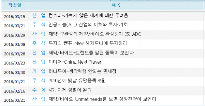 지난주(3월27일~4월2일) 증시 참여자들이 주목한 리포트 가운데 가장 많았던 것은 제약주였다.