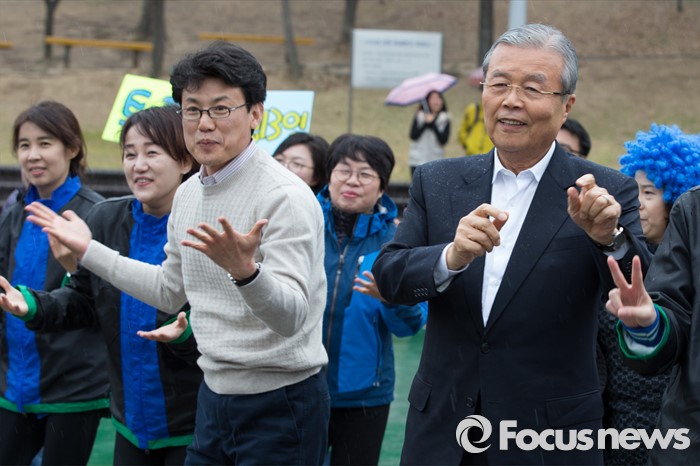 (서울=포커스뉴스) 3일 오후 서울 강서구 방화근린공원 일대에서 김종인 더불어민주당 비대위 대표 겸 선대위원장이 진성준 강서을 후보와 함께 유세를 하고 있다.