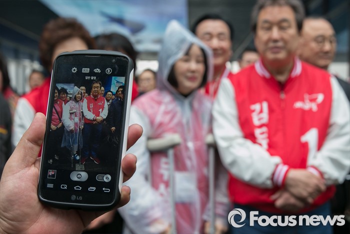 (부산=포커스뉴스) 부산광역시 중구영도구에 출마한 김무성 새누리당 대표가 3일 오후 부산시 중구 자갈치시장 공동어패류조합 앞에서 유세 전,