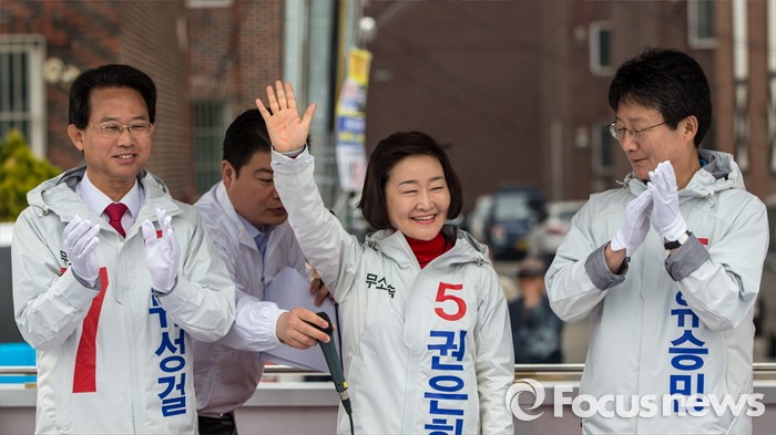| △ 손 흔드는 무소속 권은희 후보 |
