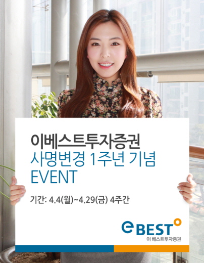 (서울=포커스뉴스) 이베스트투자증권은 사명변경 1주년을 맞이해 29일까지 다양한 행사를 개최한다고 4일 밝혔다.