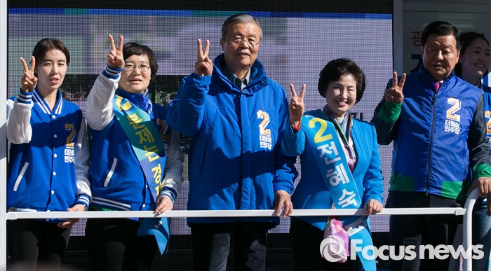 | △ 브이 그리는 더불어민주당 |
