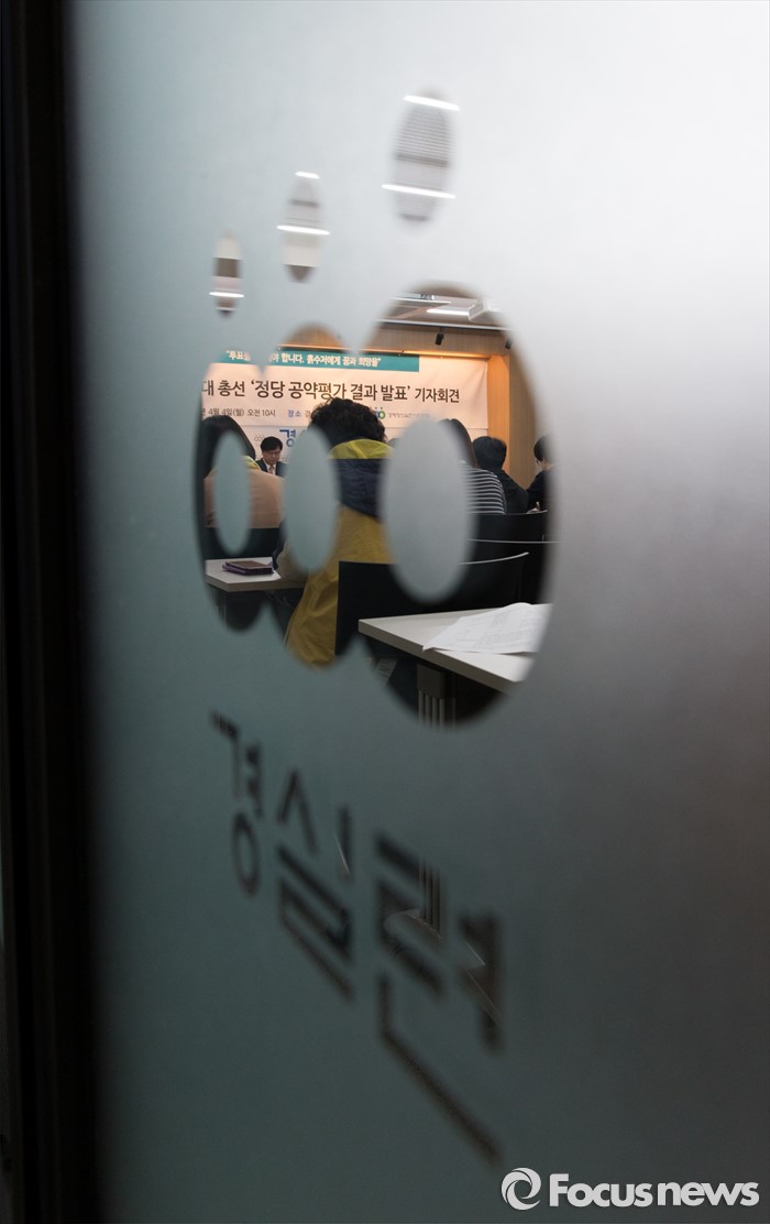 (서울=포커스뉴스) 4일 오전 서울 종로구 경제정의실천시민연합에서 경실련 관계자들이 20대 총선 정당 공약평가 결과발표 기자회견을 하고 있다.