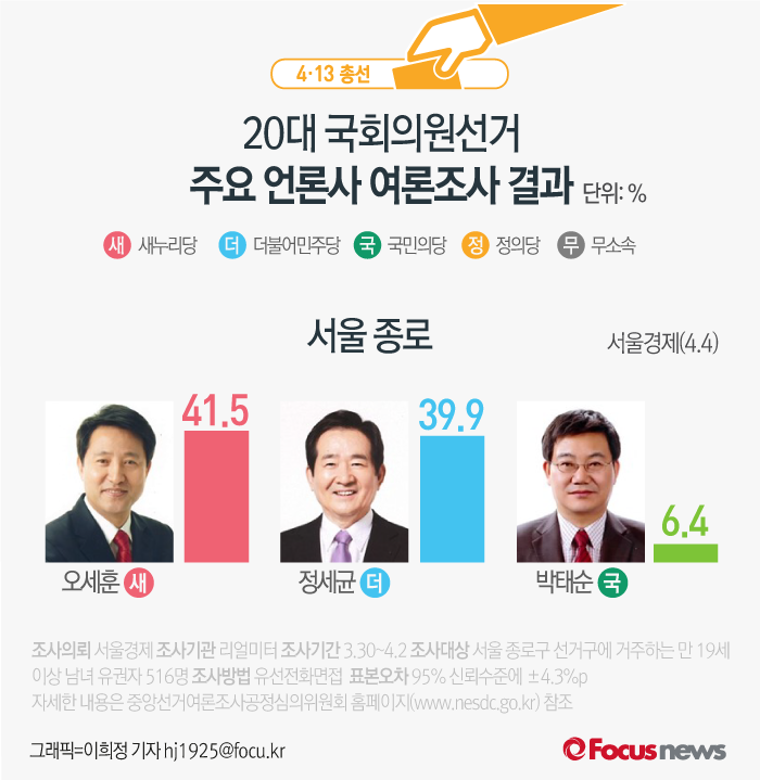 | △ [그래픽] 4·13총선 서울 종로구 여론조사결과 |