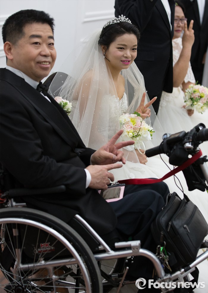 (대전=포커스뉴스) 4일 오전 대전 유성구 호텔ICC에서 열린 제18회 대전장애인자활실천대회 및 합동결혼식에서 신랑과 신부가 밝은 모습을 보이고 있다.