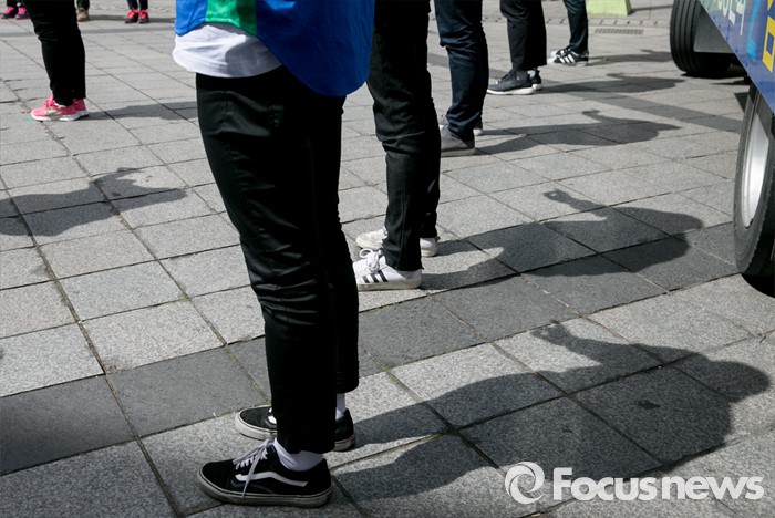 (성남=포커스뉴스) 4일 오후 경기도 서현역 인근 거리에서 열린 더불어민주당 성남 분당구 선거유세에 참여한 선거운동원들이 지지를 호소하고 있다.