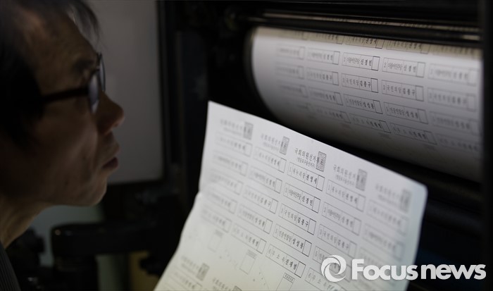 (파주=포커스뉴스) 제20대 총선 선거운동이 공식적으로 시작된 31일 오전 경기도 파주 한 인쇄소에서 직원이 투표용지 인쇄 작업을 하고 있다.