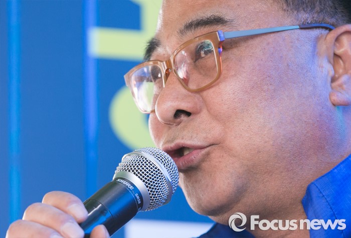 (용인=포커스뉴스) 4일 오후 경기도 이마트 죽전점 앞 광장에서 열린 더불어민주당 용인지역 합동유세에 참석한 이우현 용인병 후보가 지지를 호소하고 있다.