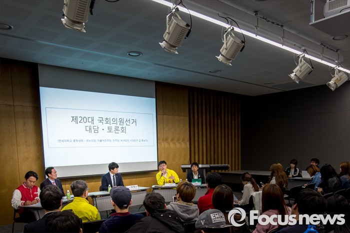 (서울=포커스뉴스) 민주당 서대문갑 이종화 후보가 4일 오후 서울 서대문구 연세대학교에서 열린 '제20대 국회의원 선거 서대문갑 후보자 토론회'에 참석해 공약 발표를 하고 있다.