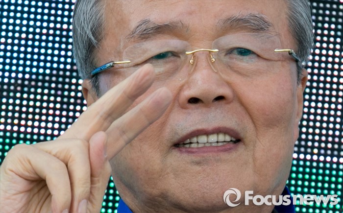 (수원=포커스뉴스) 4일 오후 경기도 지하철 1호선 성균관대역 앞에서 열린 더불어민주당 수원지역 합동유세에 참석한 김종인 비대위 대표 겸 선대위원장이 브이 포즈를 하며 지지를 호소하고 있다.
