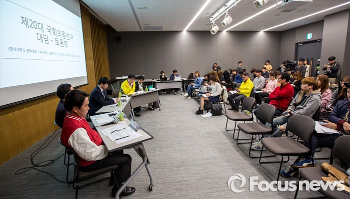(서울=포커스뉴스) 민주당 서대문갑 이종화 후보가 4일 오후 서울 서대문구 연세대학교에서 열린 '제20대 국회의원 선거 서대문갑 후보자 토론회'에 참석해 공약 발표를 하고 있다.