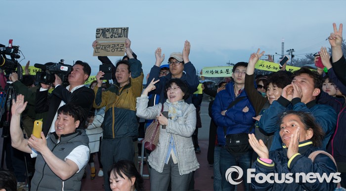 (청주=포커스뉴스) 4일 오후 충북 청주 무심천인라인스케이트장에서 문재인 더불어민주당 전 대표의 지지호소에 시민들이 환호하고 있다.