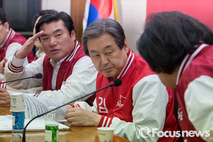 (서울=포커스뉴스) 4일 오후 서울 영등포구 새누리당사에서 열린 중앙선거대책위원회의에서 김을동 최고위원이 거수경례로 인사를 하자 김무성 대표는 간단한 목례로 원유철 원내대표는 거수경례로 답하고 있다.