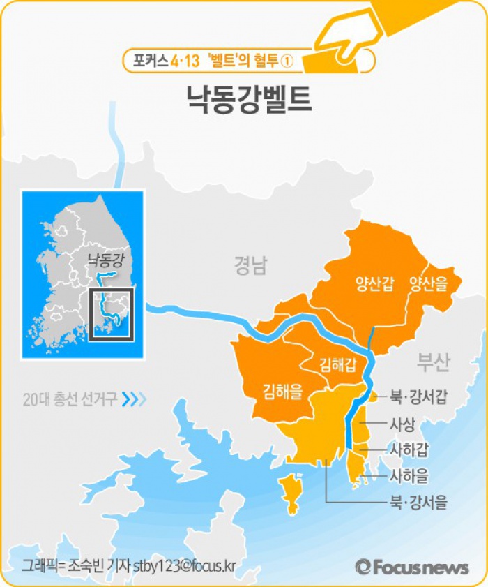 통상적으로 PK(부산·경남) 지역은 여권의 텃밭이지만 '낙동강 벨트'에서만큼은 야권 역시 지지세가 만만치 않다.