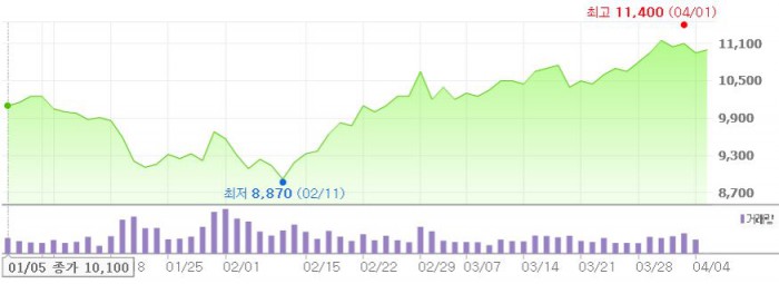 그는 "LG유플러스의 사물인터넷 회선 수는 2월 처음으로 누적 100만개를 넘어섰다"고 덧붙였다.최근 3개월간 LG유플러스 주가 추이 <그래픽출처=네이버>