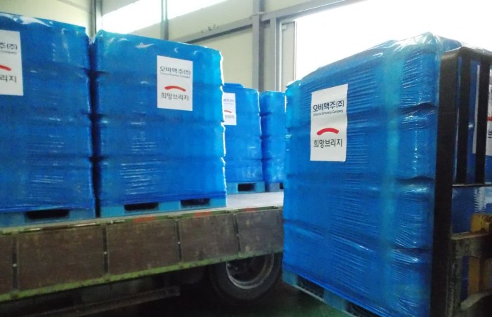 희망브리지는 최근 비상 급수대책의 일환으로 오비맥주와 함께 생수 총 5120박스(2L 3만720병)를 전남 신안군 소재 비금도와 안좌도, 임자도 등에 지원했다고 5일 밝혔다.
