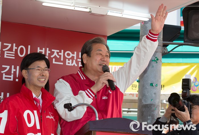 (대전=포커스뉴스) 김무성 새누리당 대표 최고위원이 5일 오전 대전 서구 한민시장 일원에서 이영규 후보의 지지를 호소하고 있다.