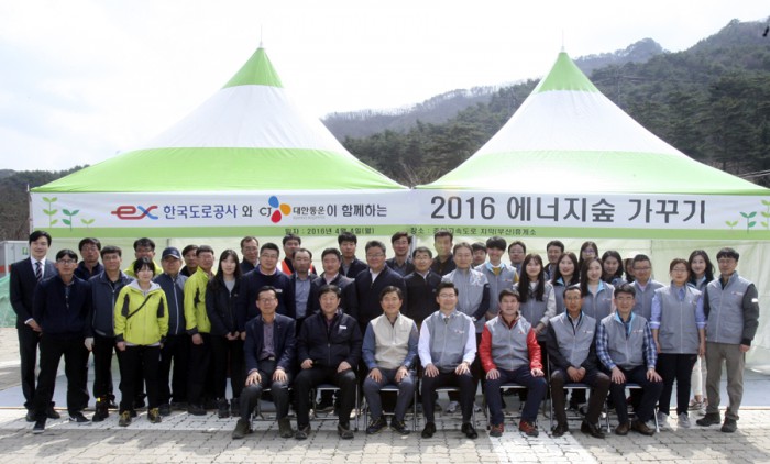 (서울=포커스뉴스) CJ대한통운은 한국도로공사와 함께 '에너지숲 가꾸기' 행사를 가졌다고 5일 밝혔다.