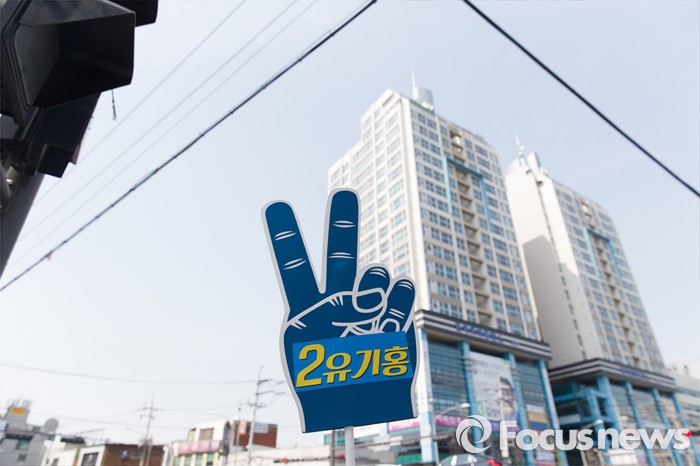 (서울=포커스뉴스) 5일 오후 서울 관악구 서울대입구역 인근에서 유기홍 더불어민주당 관악구갑 후보 선거운동원들이 지지를 호소하고 있다.