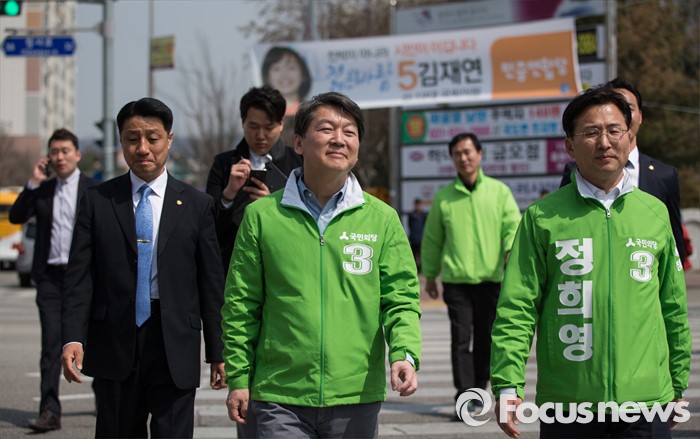 (의정부=포커스뉴스) 안철수 국민의당 상임공동대표와 정희영 의정부을 후보가 5일 오후 의정부시 금오동에서 선거운동을 하고 있다.