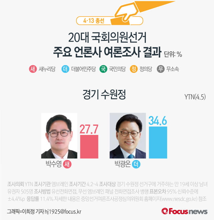 | △ [그래픽] 4·13총선 경기 수원정 여론조사결과 |