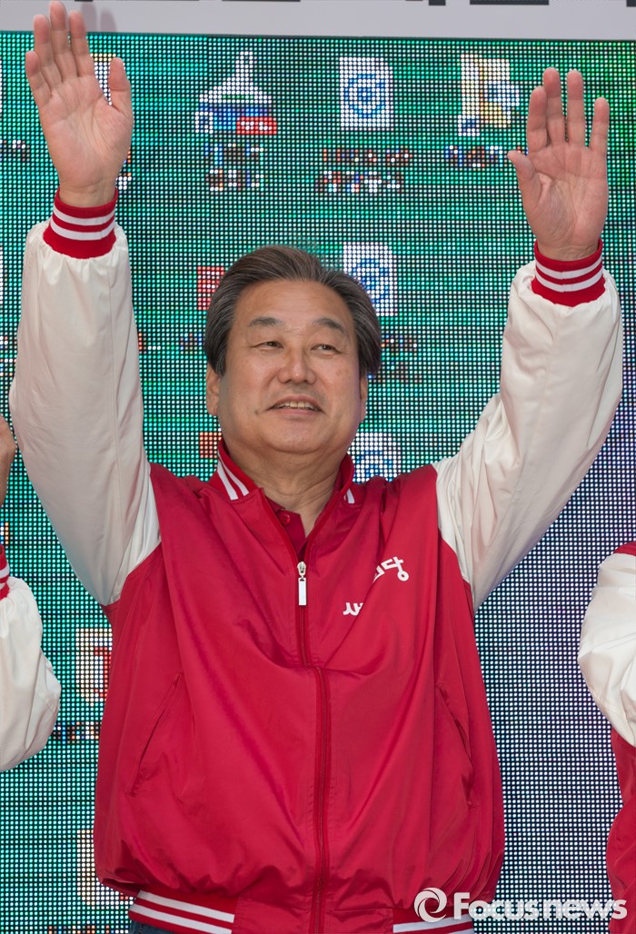 (청주=포커스뉴스) 김무성 새누리당 대표가 5일 오후 충북 청주 성안길에서 시민들에게 인사를 하고 있다.