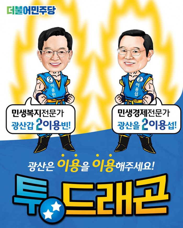 지난 3일 광산갑 이용빈 후보와 이용섭 후보는 보도자료를 내고 "광산구'투 드래곤' 이용빈·이용섭 후보는 이번 4.13 총선에서 광산구갑·을 각 지역에 맞는 공약을 제시하고 '복지와 경제' 분야에서 두 후보의 전문성을 살려 광산구 전역을 아우르는 정책연대의 투-트랙 전략으로 시너지 효과를 극대화한다"고 밝혔다.