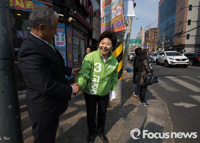 (서울=포커스뉴스) 국민의당 은평을 고연호 후보가 5일 오후 서울 은평구 갈현동 인근에서 시민들을 만나 유세를 하고 있다.