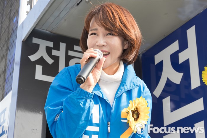 (서울=포커스뉴스) 20대 총선에 출마한 전현희 더불어민주당 강남을 후보가 5일 오후 서울 수서역 인근에서 유권자들에게 지지를 호소하고 있다.