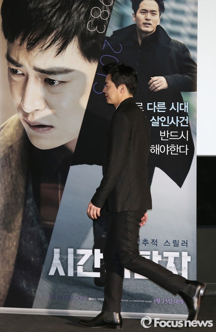 (서울=포커스뉴스) 5일 오후 서울 성동구 왕십리 CGV에서 열린 영화 '시간이탈자' 언론시사회에 참석한 배우 조정석이 포토타임을 위해 이동하고 있다.
