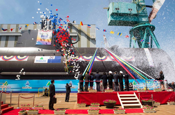 해군은 5일 오전 214급 잠수함 7번함인 1800톤급 홍범도함의 진수식을 울산 현대중공업에서 진행했다고 밝혔다.