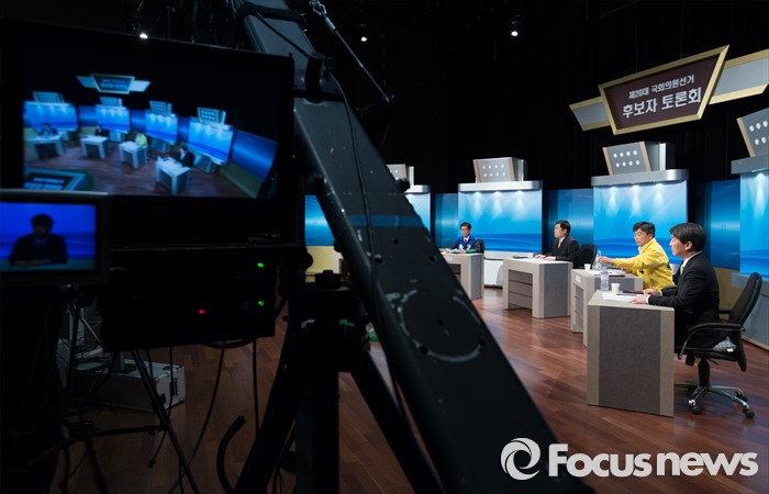 (서울=포커스뉴스) 제20대 총선 노원구 국회의원 후보자들이 5일 오후 서울 노원구 인덕대학교 은봉관에서 열린 노원후보자 TV토론회에 앞서 리허설을 하고 있다.