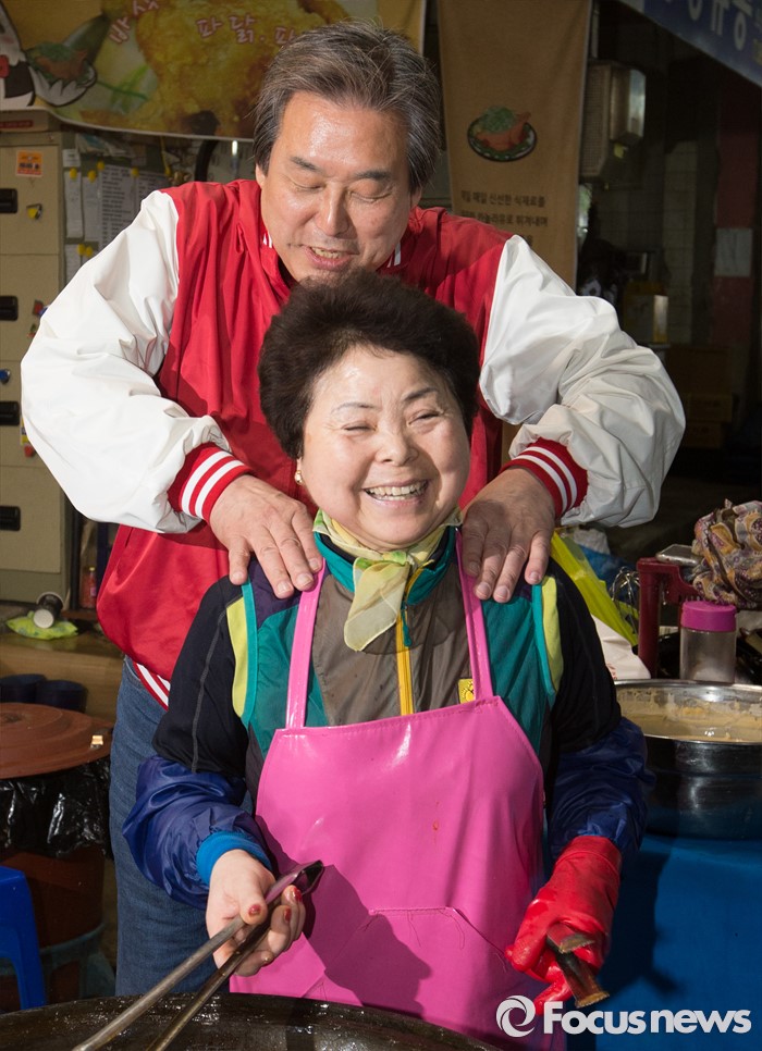 (세종=포커스뉴스) 김무성 새누리당 대표가 5일 오후 세종시 조치원읍 세종전통시장을 방문, 상인의 어깨를 주물러주고 있다.