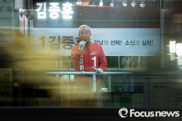 (서울=포커스뉴스) 20대 총선 출마한 김종훈 새누리당 강남을 후보가 5일 오후 서울 강남구 개포주공1단지아파트 인근에서 유권자들에게 지지를 호소하고 있다.