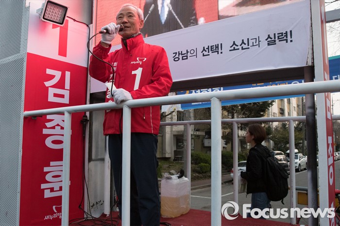 (서울=포커스뉴스) 20대 총선 출마한 김종훈 새누리당 강남을 후보가 5일 오후 서울 강남구 개포주공1단지아파트 인근에서 유권자들에게 지지를 호소하고 있다.