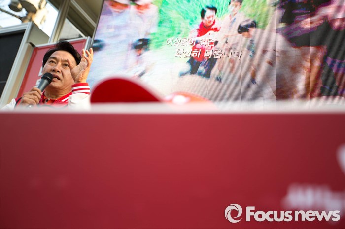(서울=포커스뉴스) 5일 오후 서울 서대문구 충현동 인근에서 새누리당 서대문갑 이성헌 후보가 유세를 하고 있다.